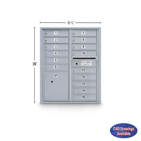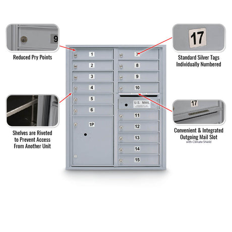 15 Door Standard 4C Mailbox with 1 Parcel Locker - Additional Colors Available