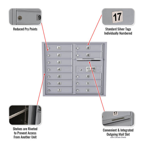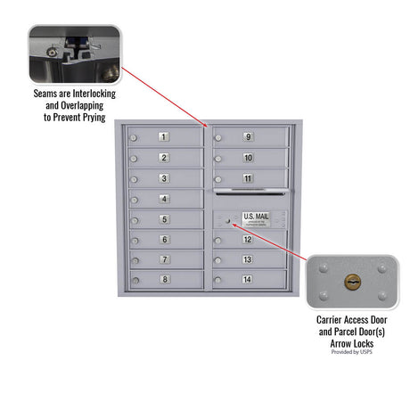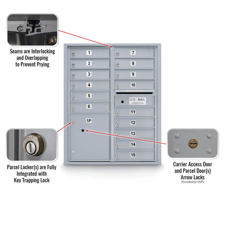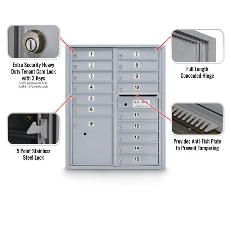 15 Door Standard 4C Front Loading Mailbox with 2 Parcel Lockers