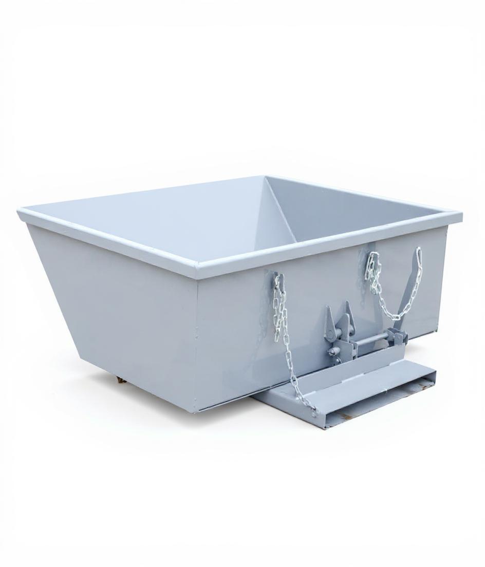 • Automatic dump cycle: Trip latch from the forklift; hopper resets when the mast tilts back—no manual release.