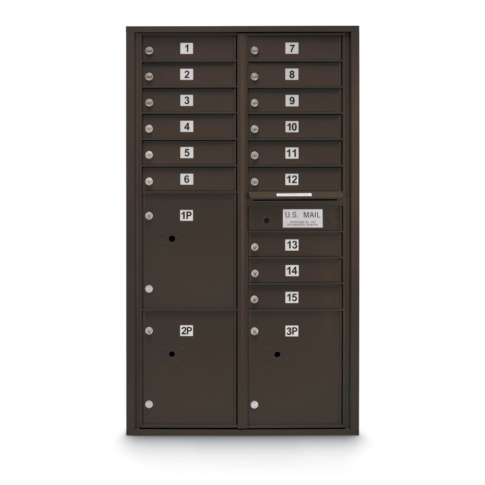 15 Door Standard 4C Mailbox with 3 Parcel Lockers