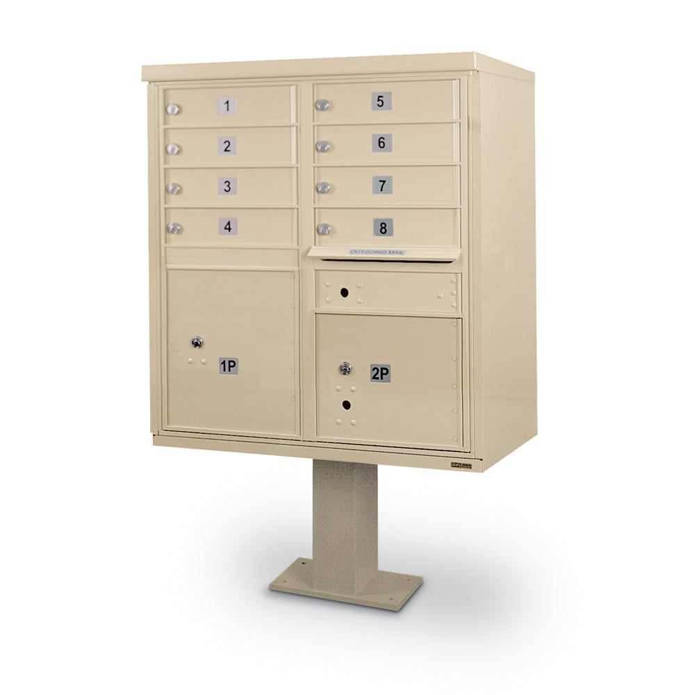 8 Door F-Spec Cluster Box Unit with Short Pedestal - Sandstone is backordered and will ship as soon as it is back in stock.