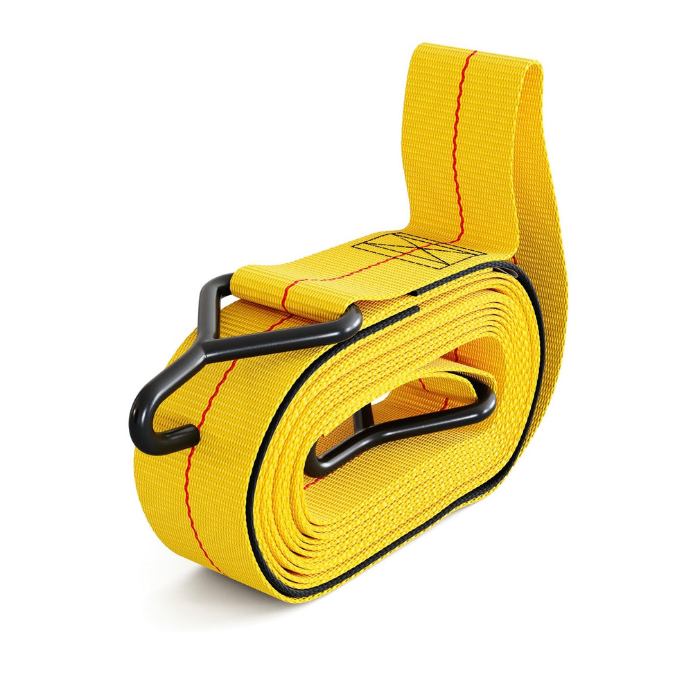 Use guidance: Use one strap per bay opening; add additional straps for tall or unstable loads. Inspect webbing, stitching, and hardware before use and replace if worn or damaged. Not for overhead lifting or personal fall protection.