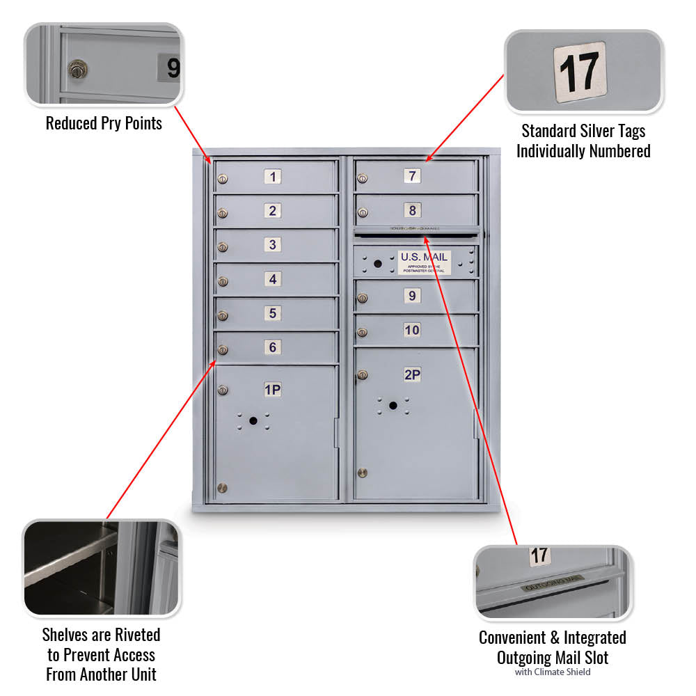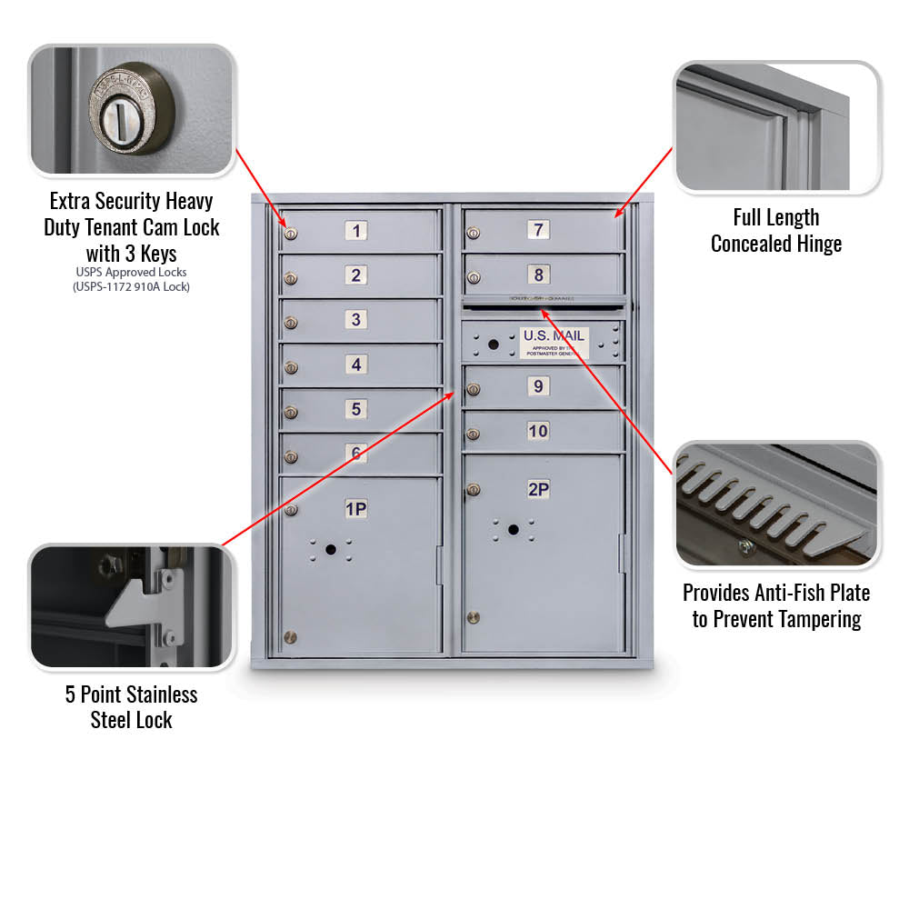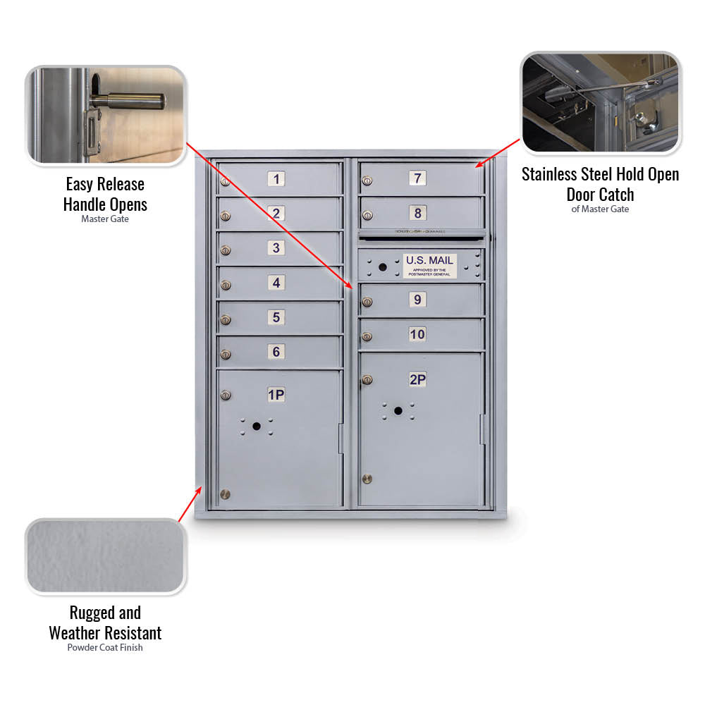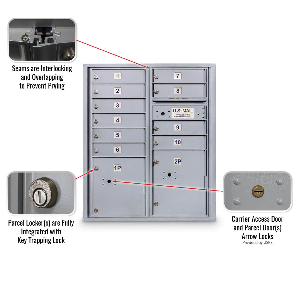 10 Door 4C Horizontal Mailbox - 2 Parcel Lockers - ADA Certified