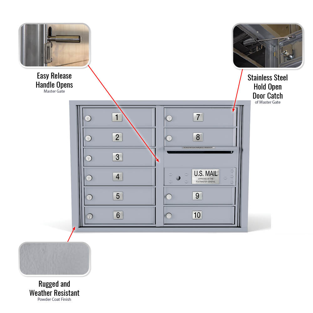 10 Door Standard 4C Mailbox - Gold is backordered and will ship as soon as it is back in stock.