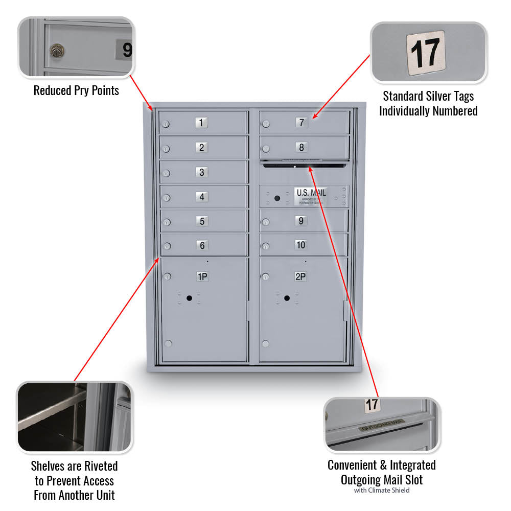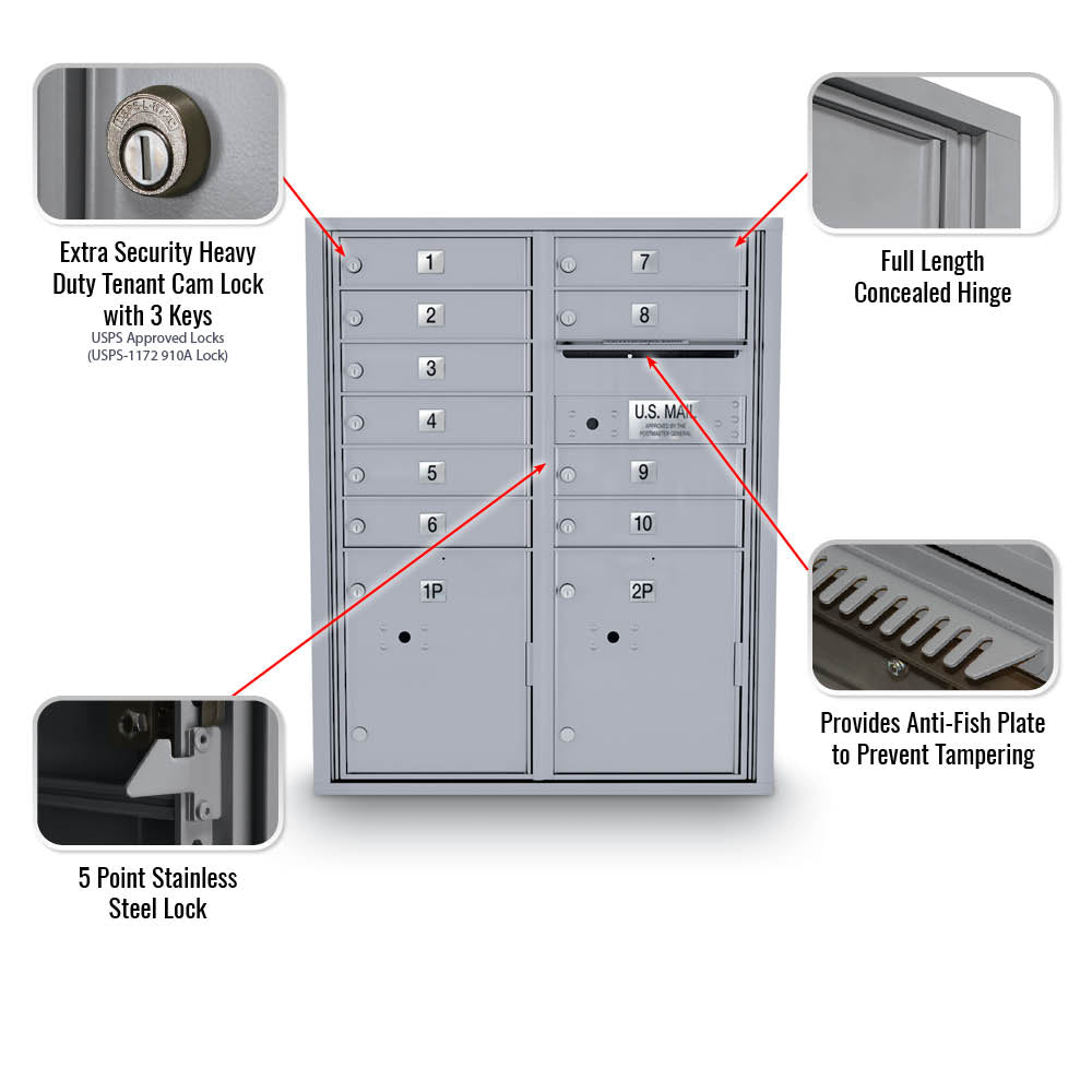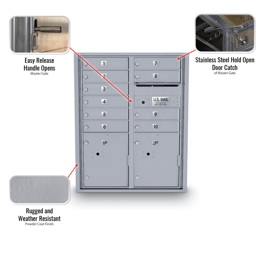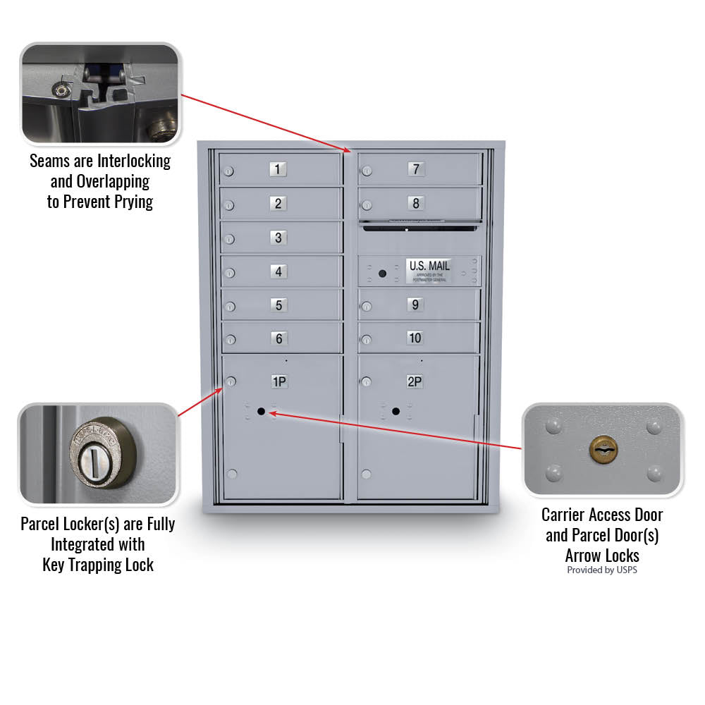 10 Door Standard 4C Mailbox with (2) Parcel Door