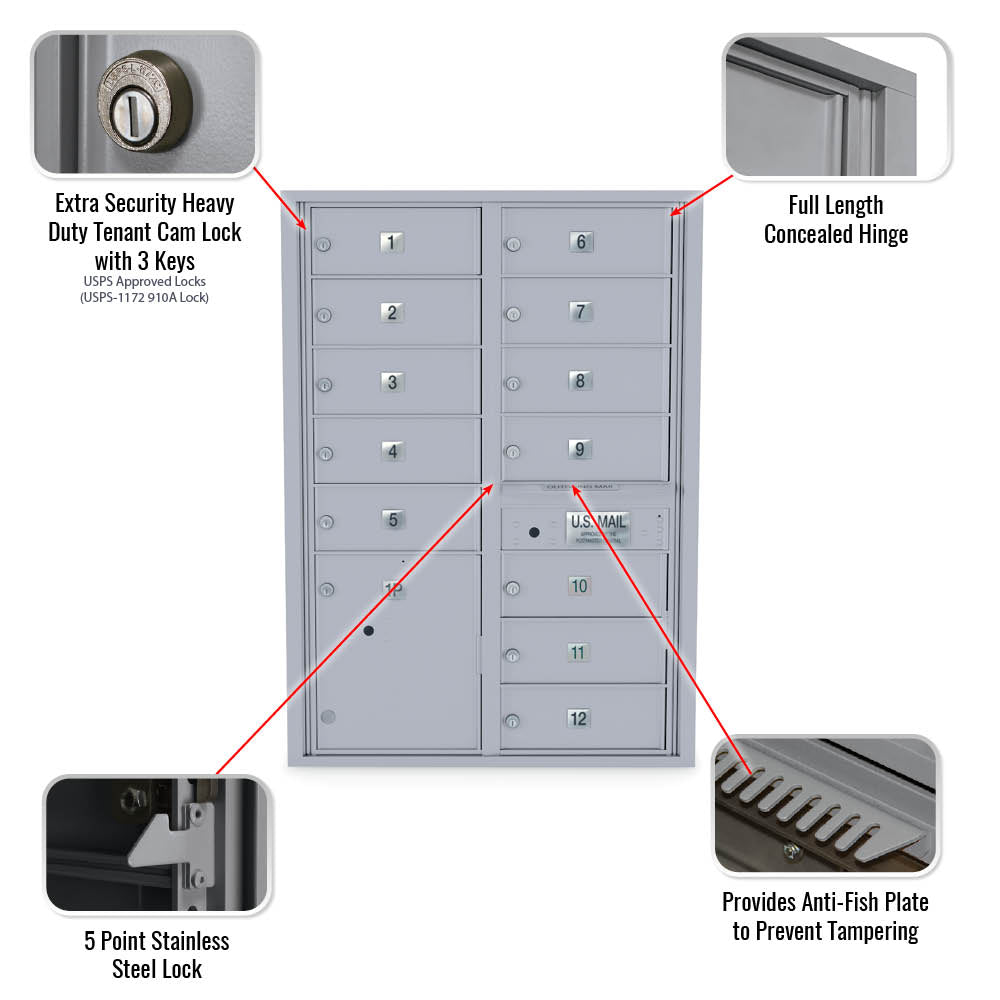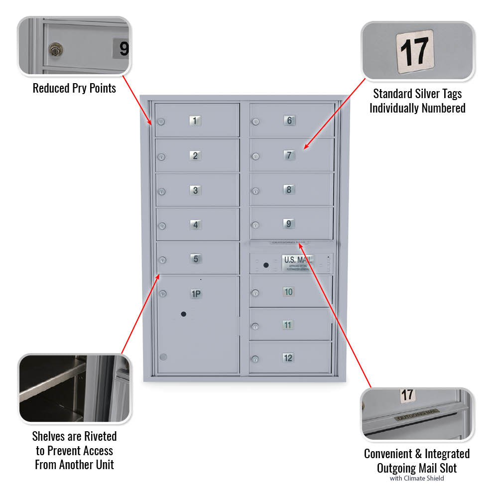 12 - 5" Business Door and 1 - Parcel Door - Silver Powder Coat is backordered and will ship as soon as it is back in stock.