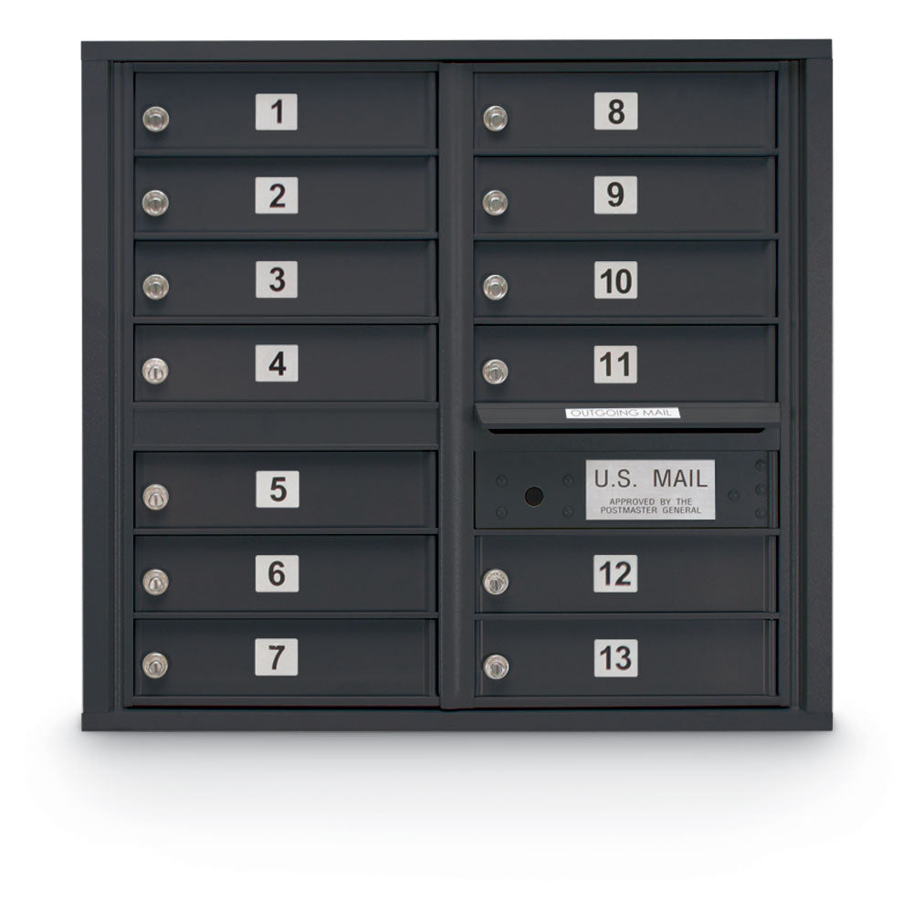 13 Door Standard 4C Mailbox - Postal Grey is backordered and will ship as soon as it is back in stock.