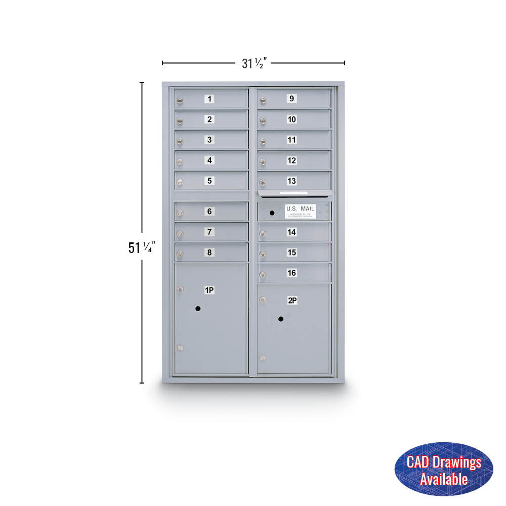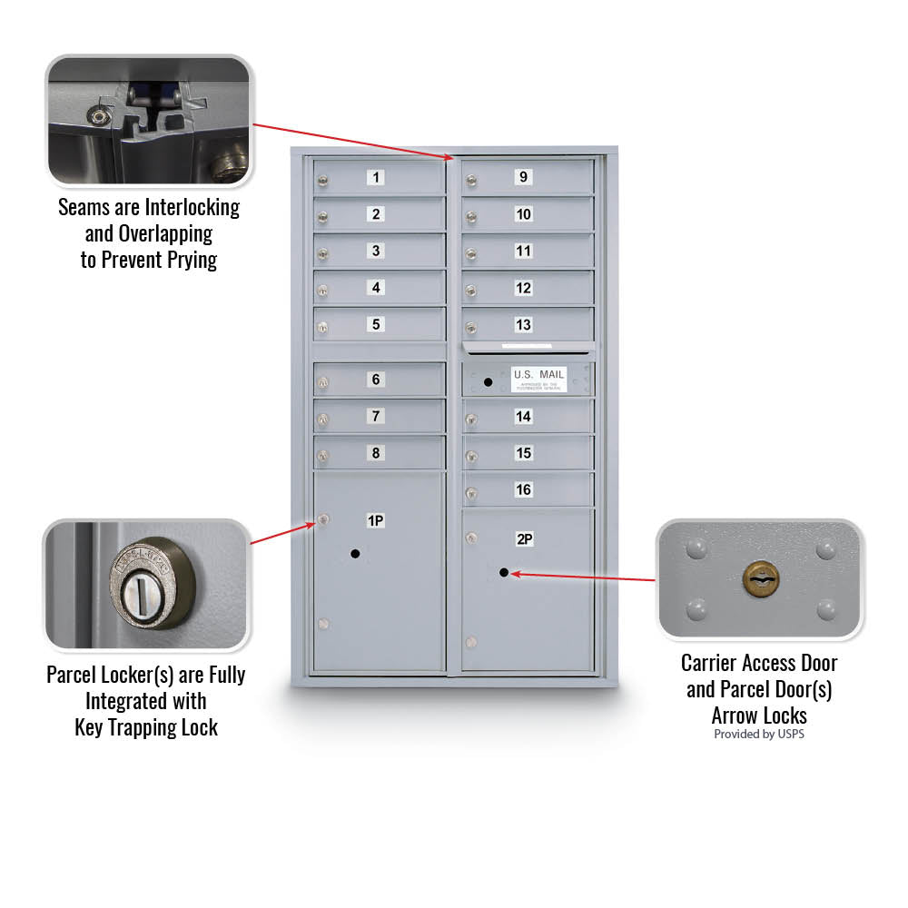 16 Door Standard 4C Std Mailbox with 2 Parcel Lockers - Additional Colors Available