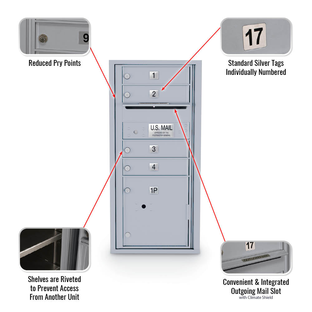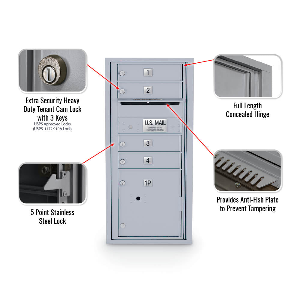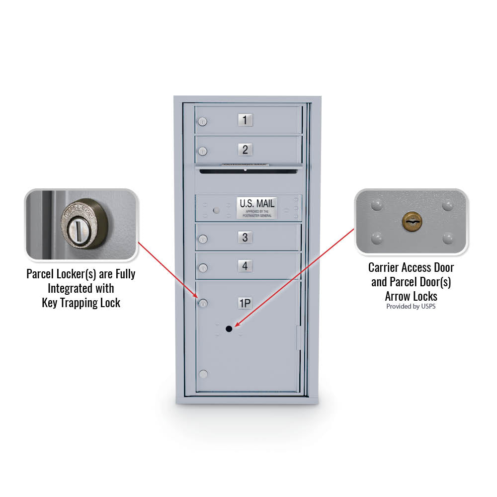 4 Door Standard 4C Mailbox with 1 Parcel Door