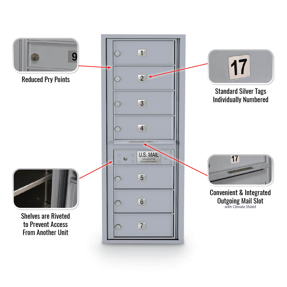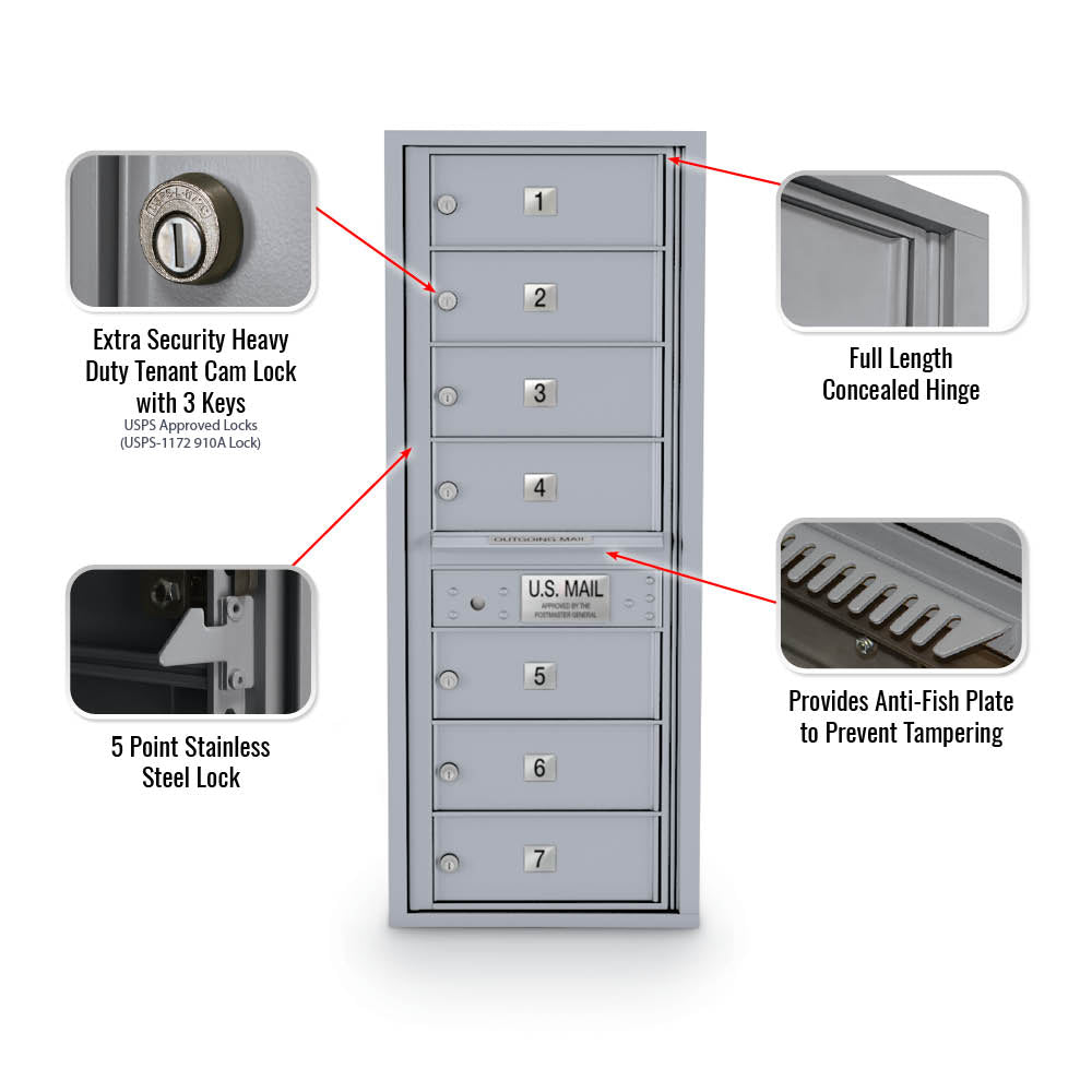 - 7 Individual Doors: Secure mail slots for multiple users.
