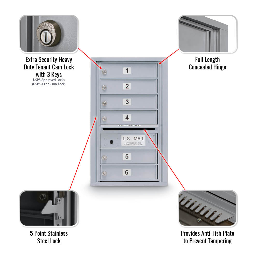 6 Door Standard 4C Mailbox - Additional Colors Available - Bronze is backordered and will ship as soon as it is back in stock.
