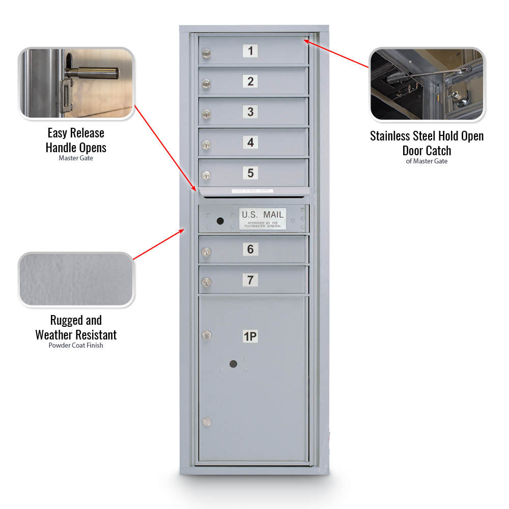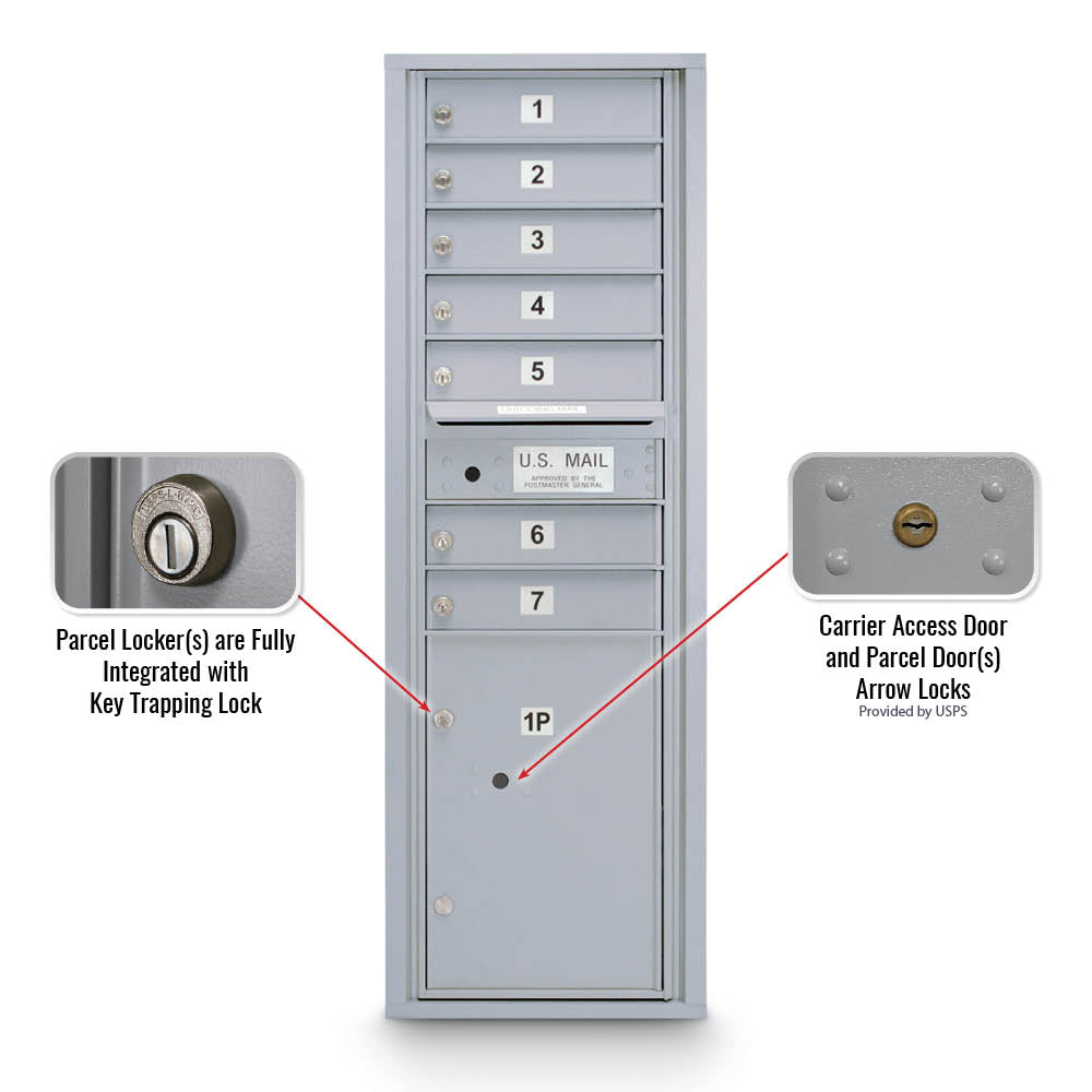 7 Door Standard 4C Mailbox with (1) Parcel Locker