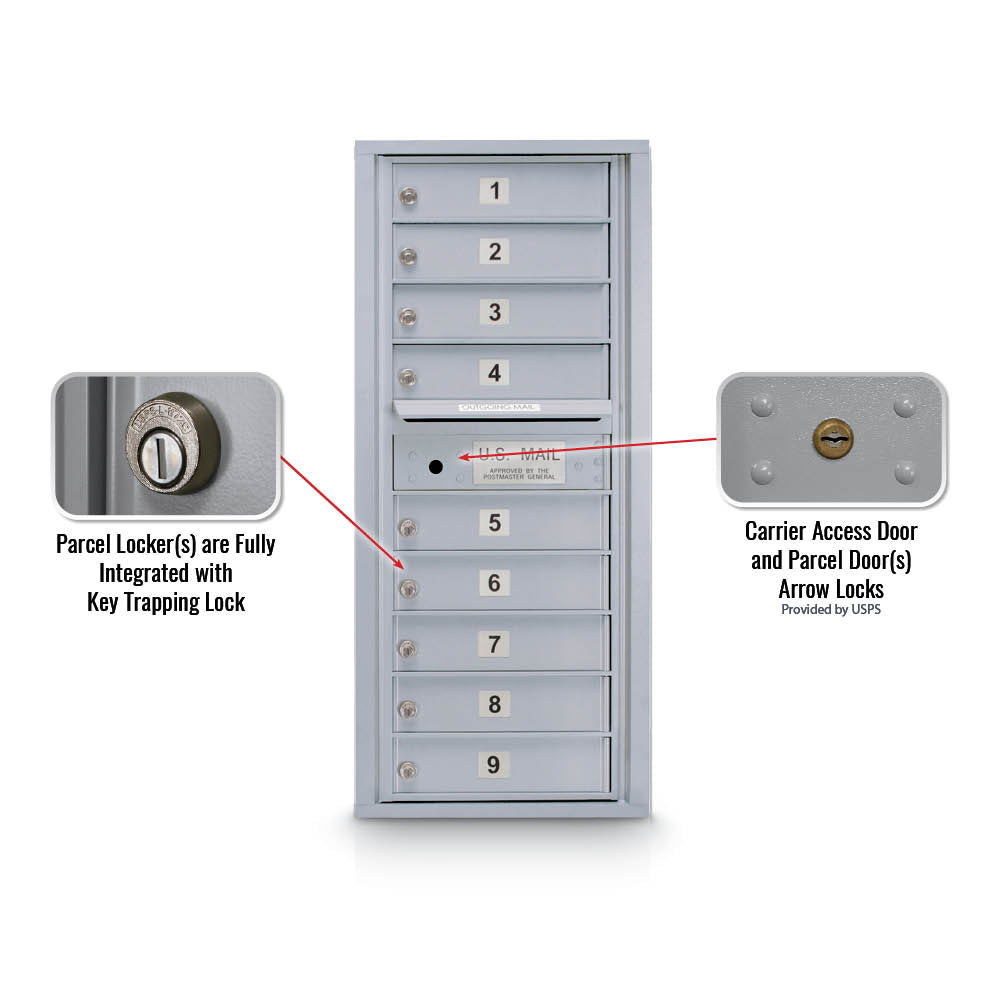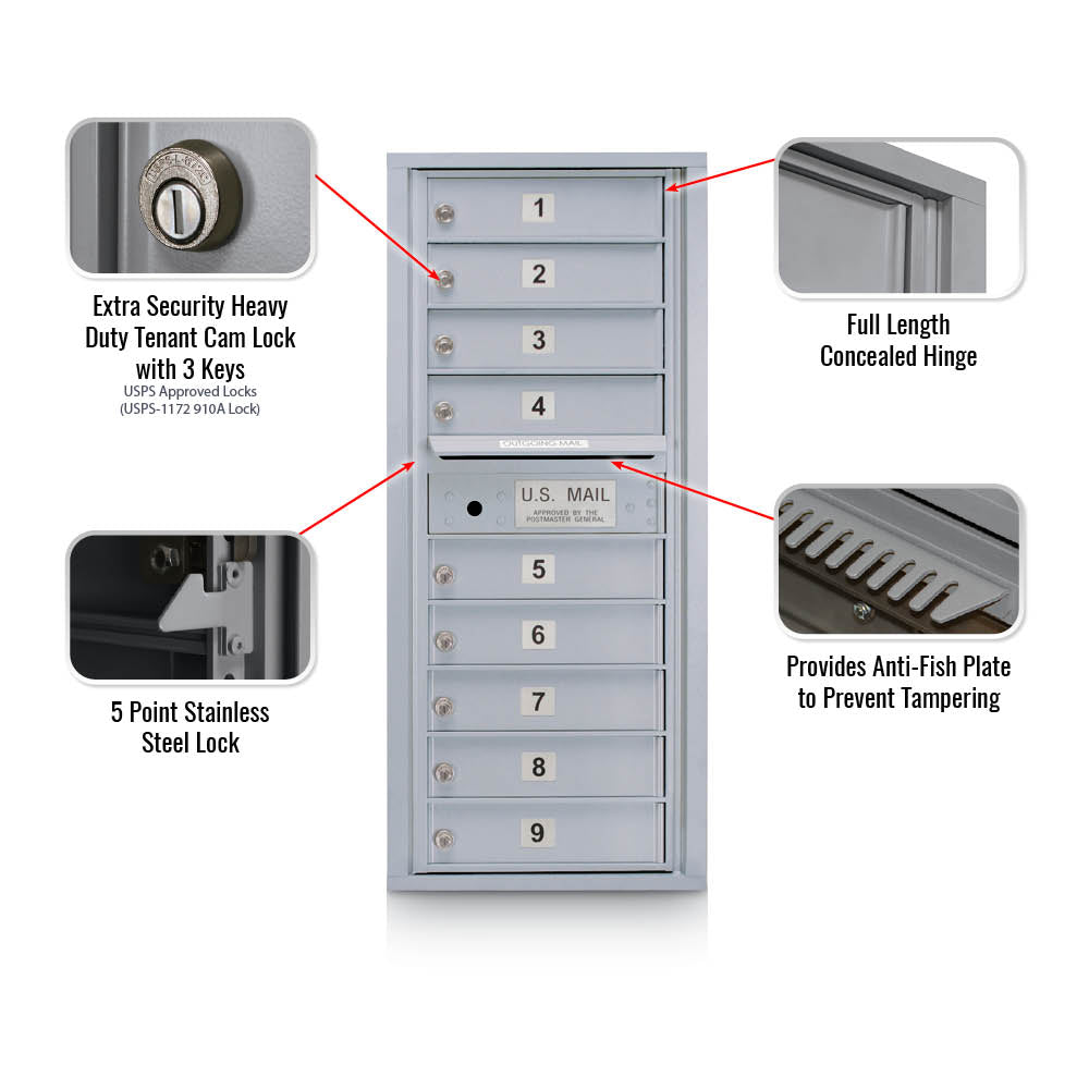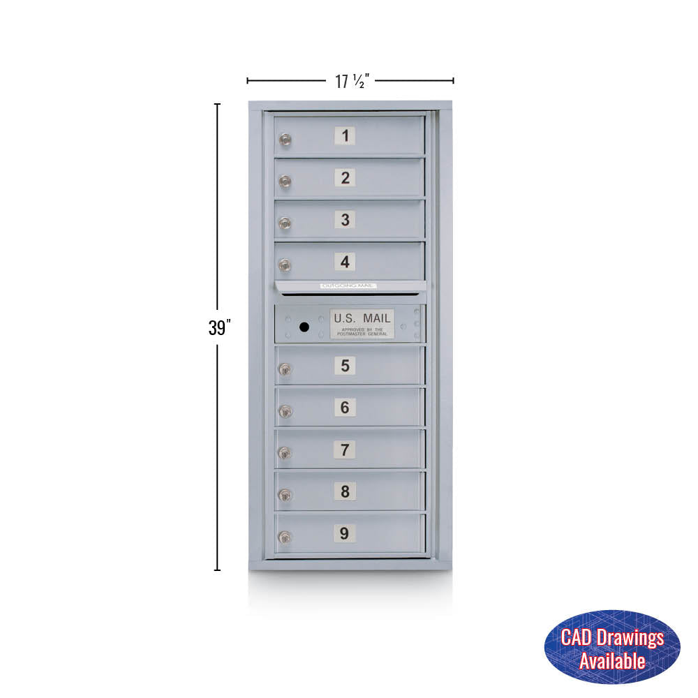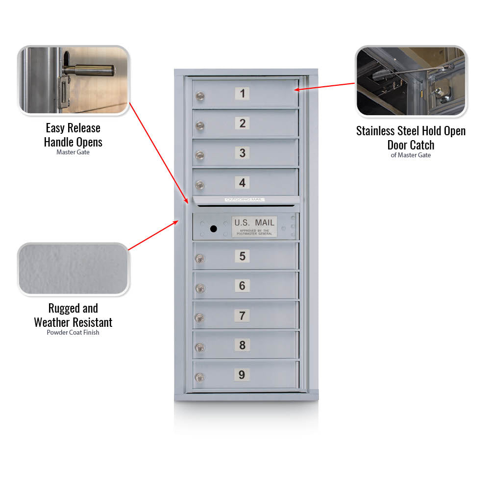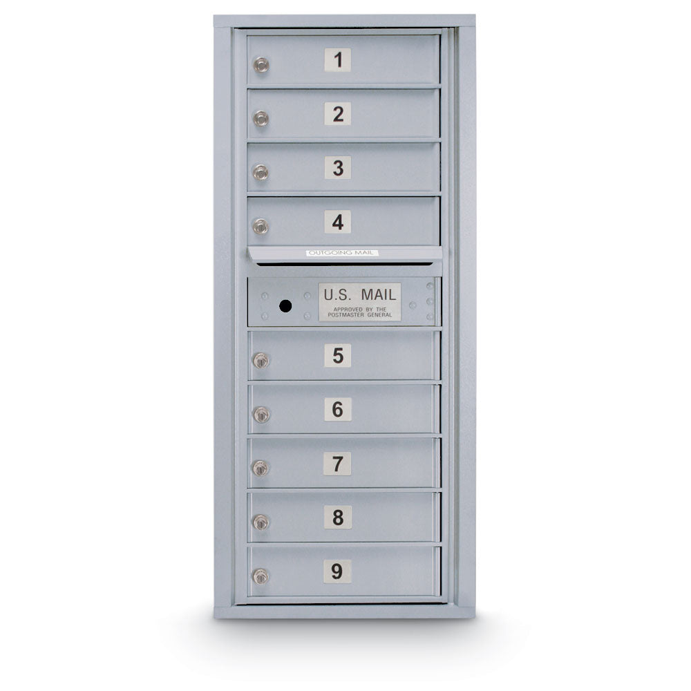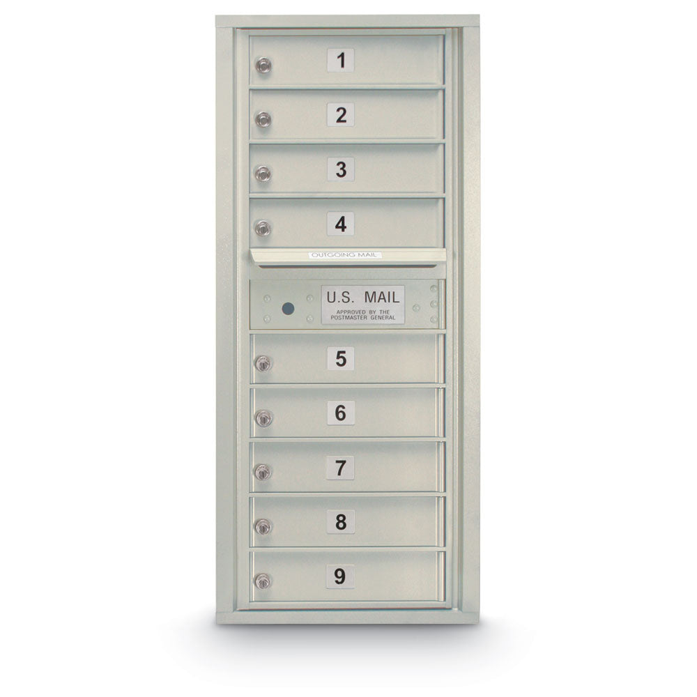9 Door Standard 4C Mailbox - Silver Powder Coat is backordered and will ship as soon as it is back in stock.