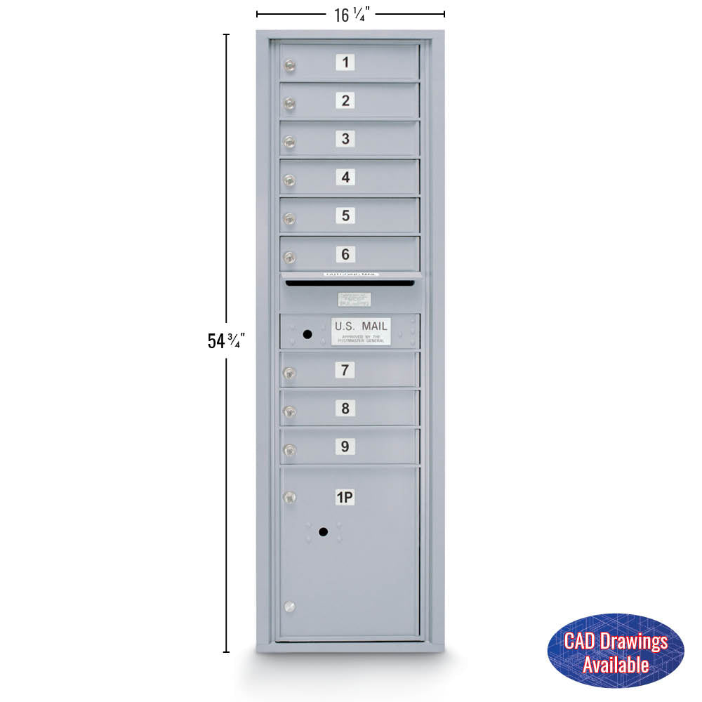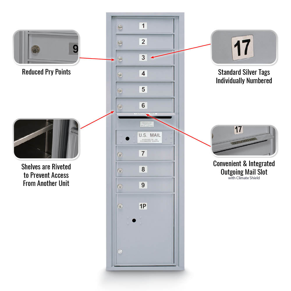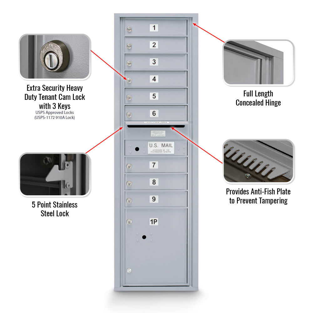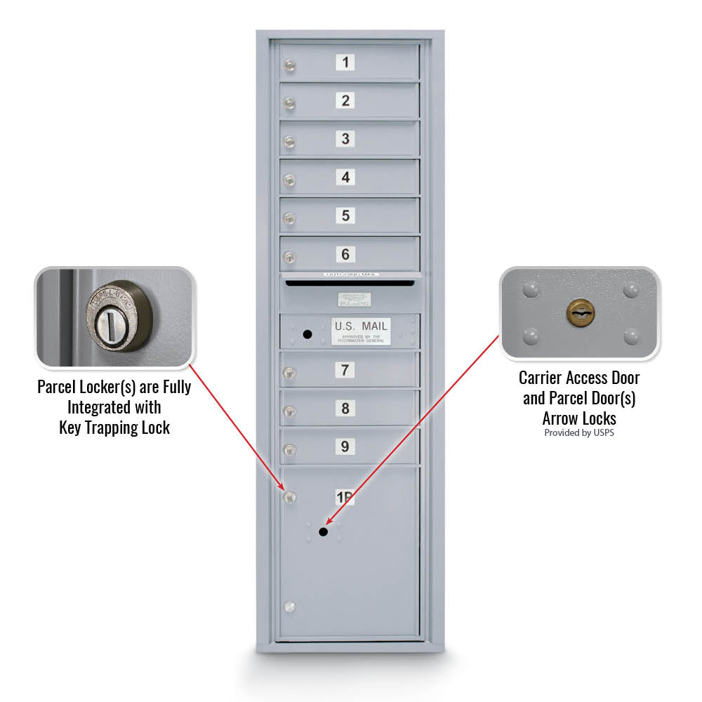 9 Door Standard 4C Mailbox with (1) Parcel Locker - Additional Colors Available
