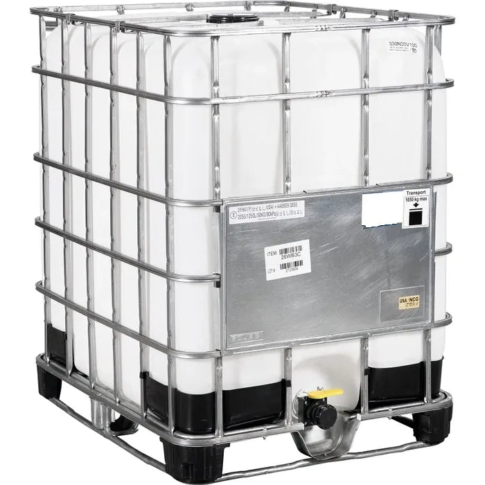 Explore our range of Industrial Bulk Containers (IBC) tote tanks, designed for efficiency and safely storing and transporting various fluids and materials. Our collection includes both reconditioned and rebottled options in 275 and 330 gallon capacities, each tailored to meet diverse industrial requirements. All IBC totes come with a 6" threaded lid, a 2" drain valve, and can safely be stacked up to three (3) containers high.