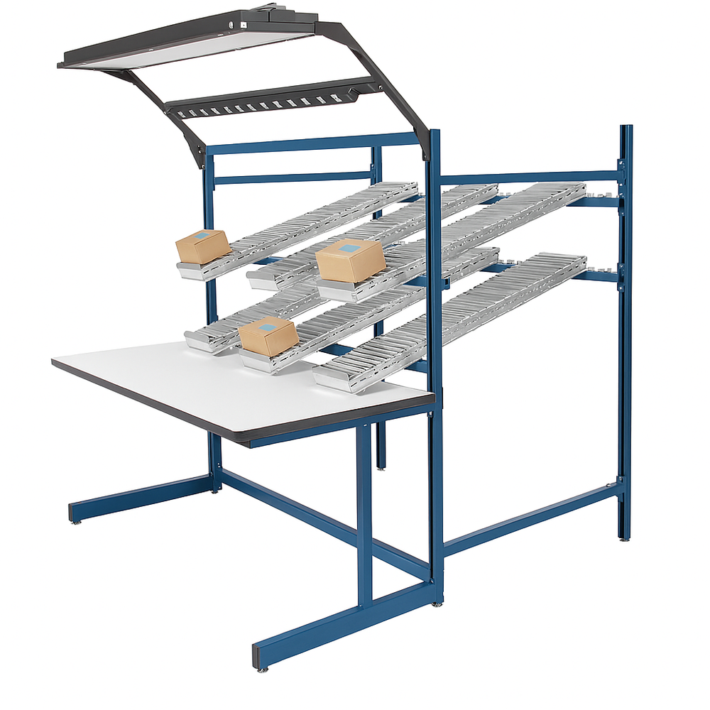 This industrial-grade gravity flow workbench is designed for high-efficiency storage and material access at the point of use. Ideal for production environments, laboratories, and packaging stations, it reduces material handling and improves workflow.