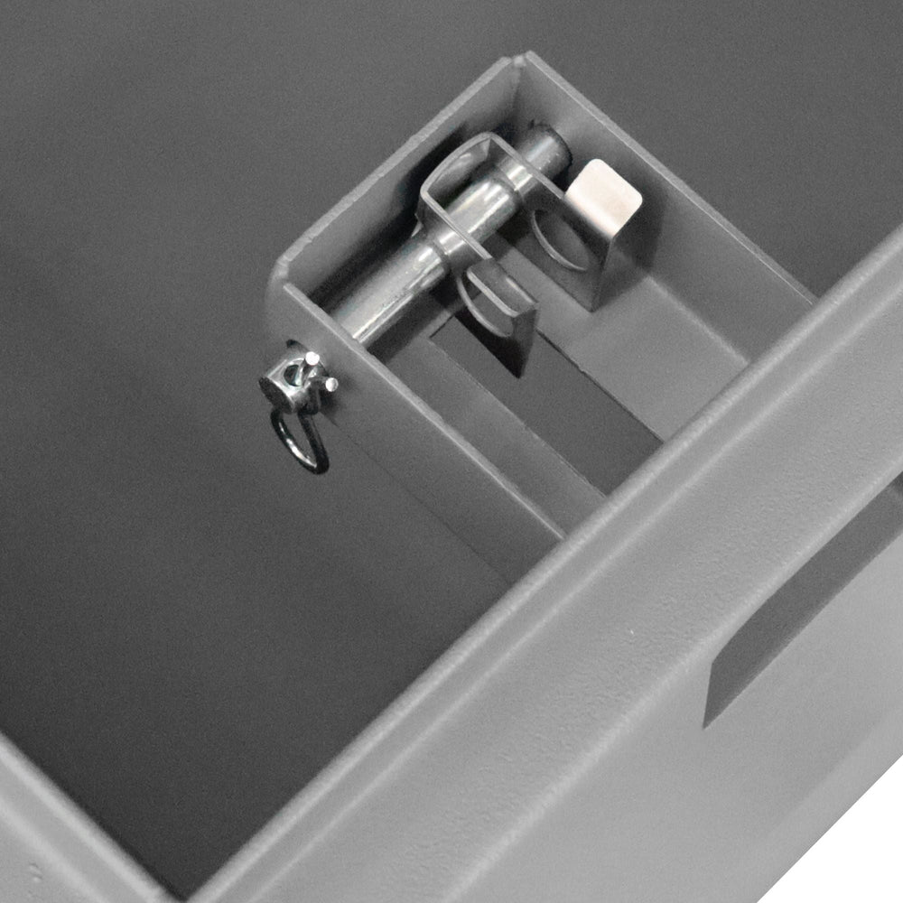 This 16 cubic feet jobsite storage container is robust, carefully made of 14-Gauge steel. Its dimensions are 48 x 24 x 27-13/16. Color: Gray.