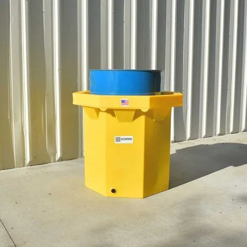 The Ultra-Spill Collector® stands out as an ingenious solution for spill containment and drum transportation, catering specifically to 55-gallon drums. This device not only secures spills efficiently but also facilitates the movement of drums across locations with ease, compatible with pallet jacks, forklifts, or an optional dolly. Incorporating a drum lifter or similar equipment allows for seamless drum integration into the unit, ensuring any potential leaks or spills are effectively contained.
