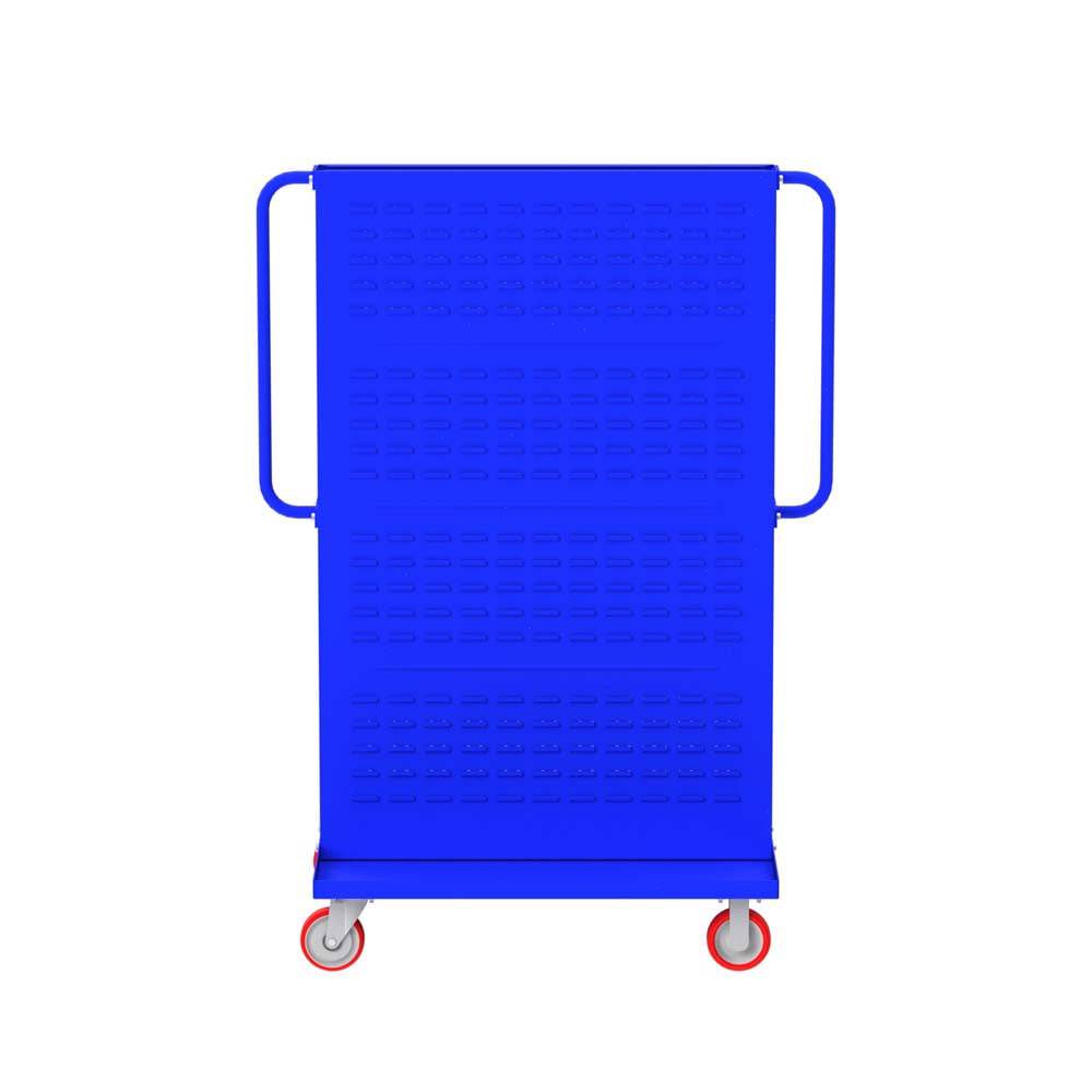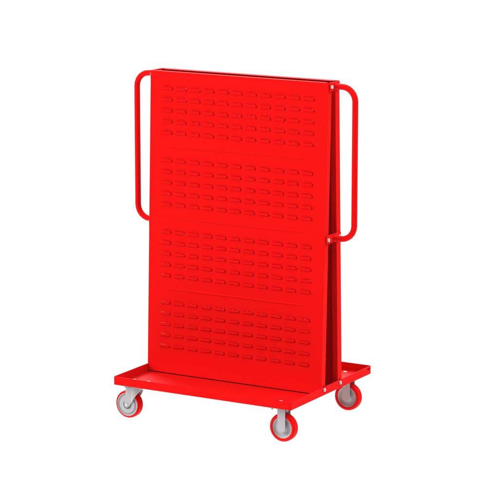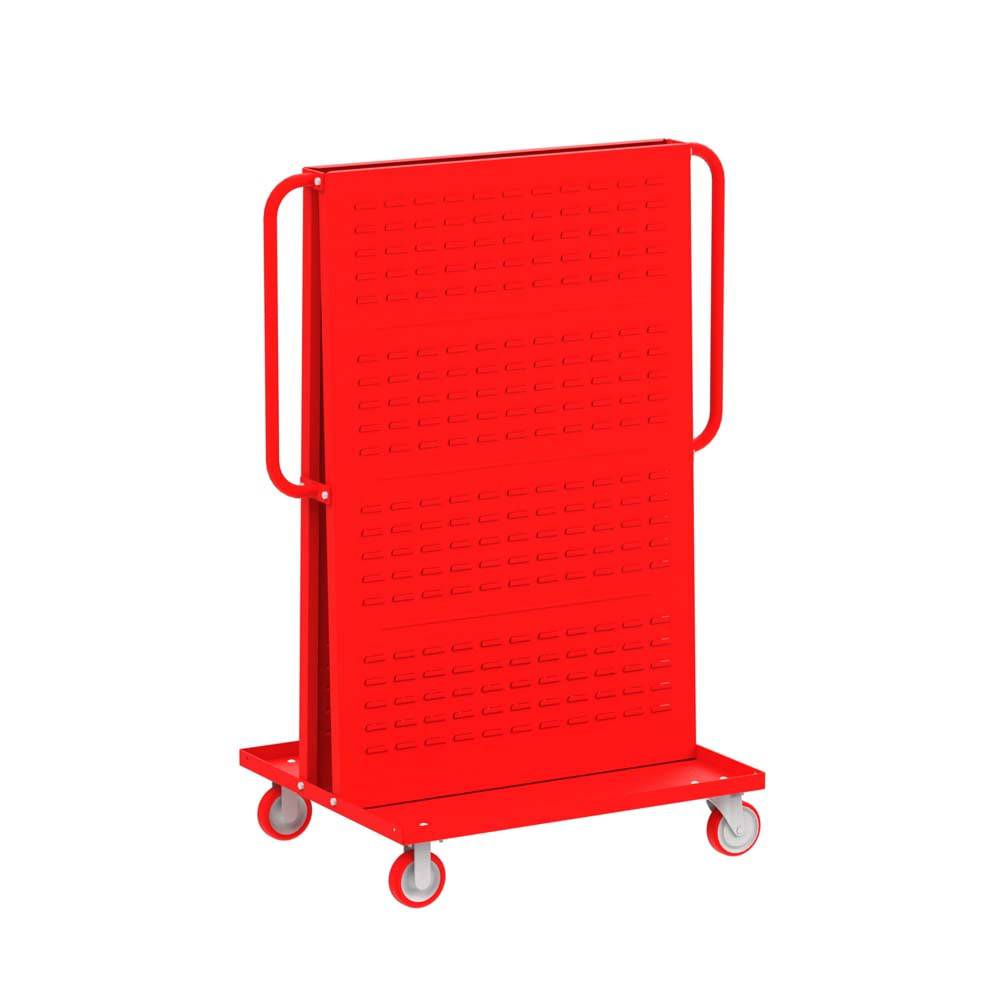 Constructed with a sturdy 12 gauge steel base, the carts have dual-sided 18 gauge steel panels, available in pegboard or louvered styles. Pegboard panels accommodate standard circle pegboard hooks, while louvered panels are compatible with hanging plastic storage bins. These dual-sided carts come in configurations of two louvered panels, two pegboard panels, or one of each, with various optional accessories available separately. Optional pegboard or louvered end panels can be added for increased storage capacity. The carts are also compatible with standard pegboard hooks and Valley Craft’s plastic storage bins for versatile organization.