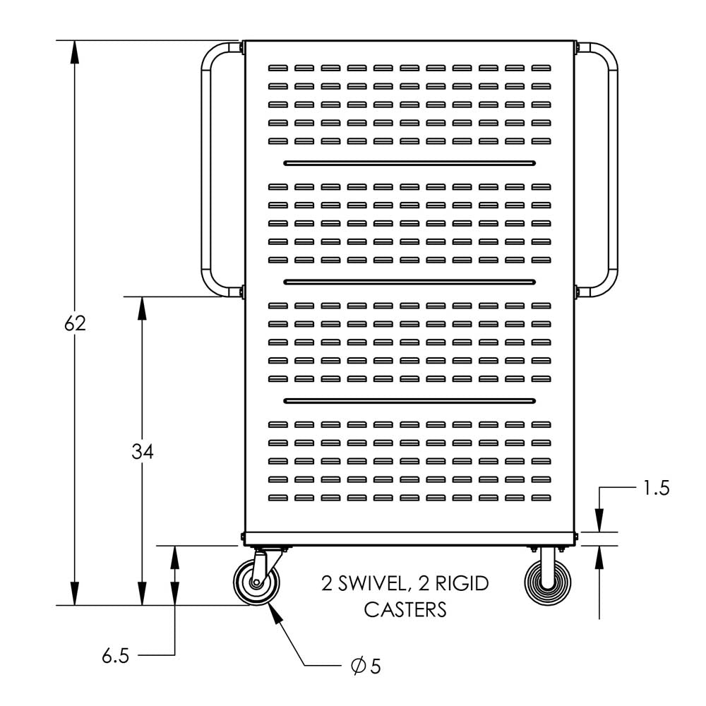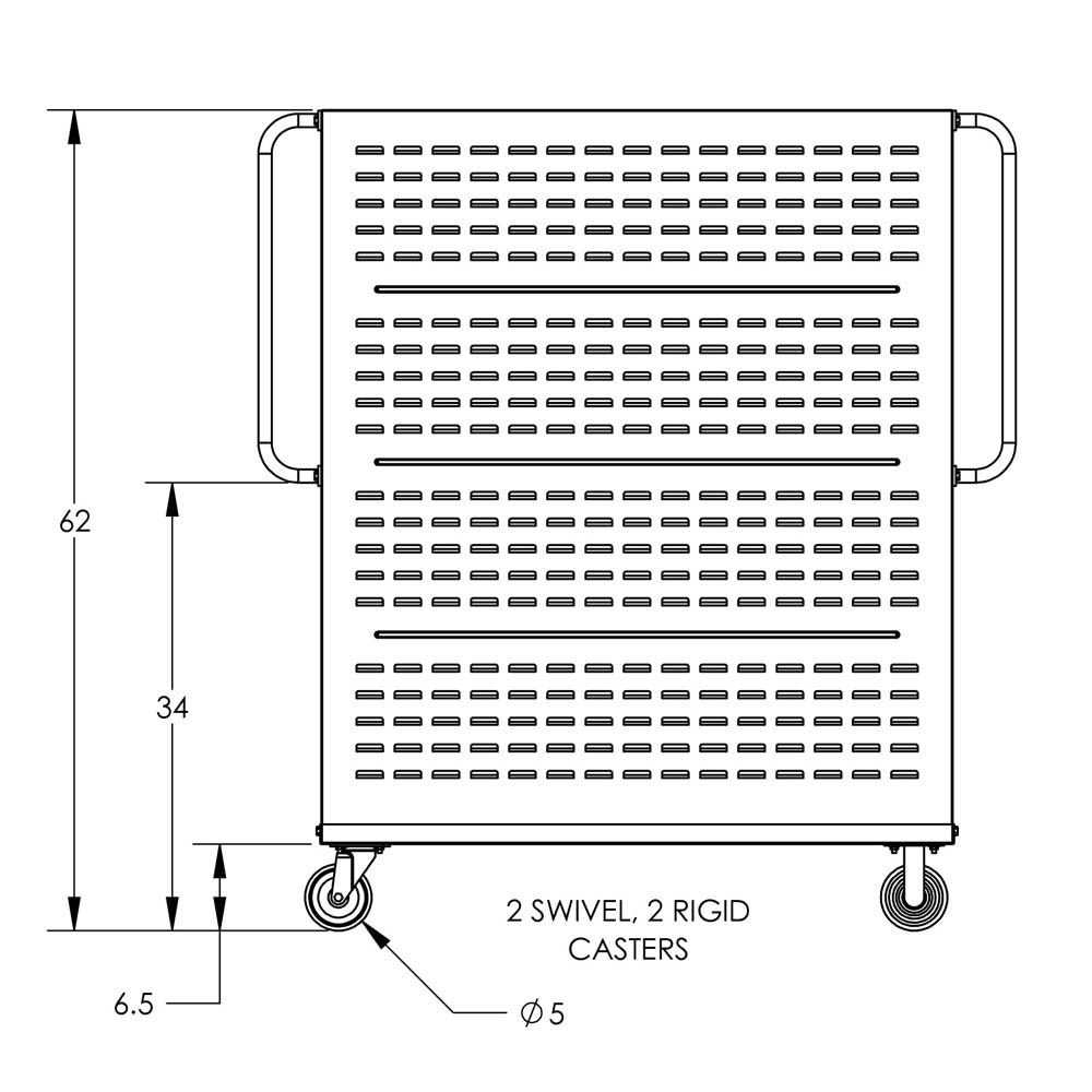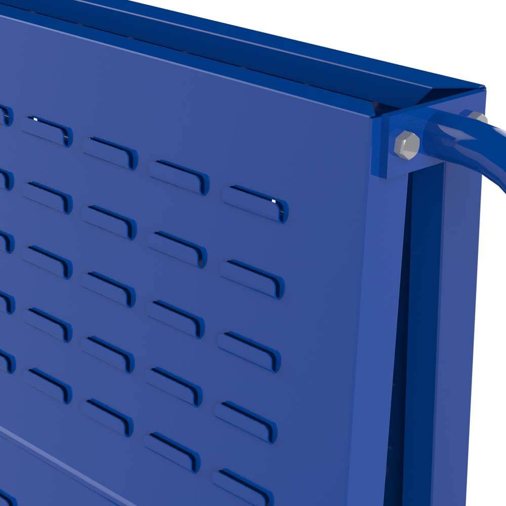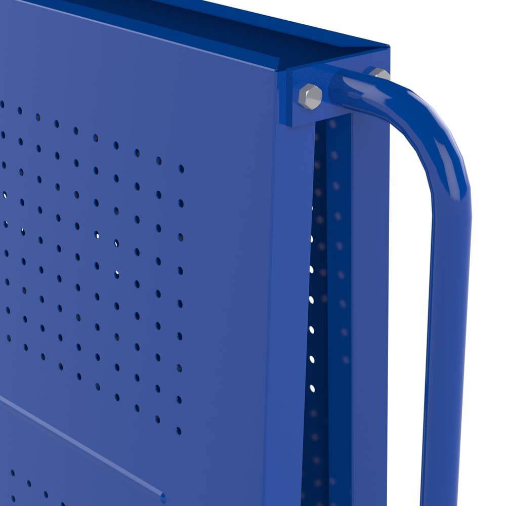 Constructed with a sturdy 12 gauge steel base, the carts have dual-sided 18 gauge steel panels, available in pegboard or louvered styles. Pegboard panels accommodate standard circle pegboard hooks, while louvered panels are compatible with hanging plastic storage bins. These dual-sided carts come in configurations of two louvered panels, two pegboard panels, or one of each, with various optional accessories available separately. Optional pegboard or louvered end panels can be added for increased storage capacity. The carts are also compatible with standard pegboard hooks and Valley Craft’s plastic storage bins for versatile organization.