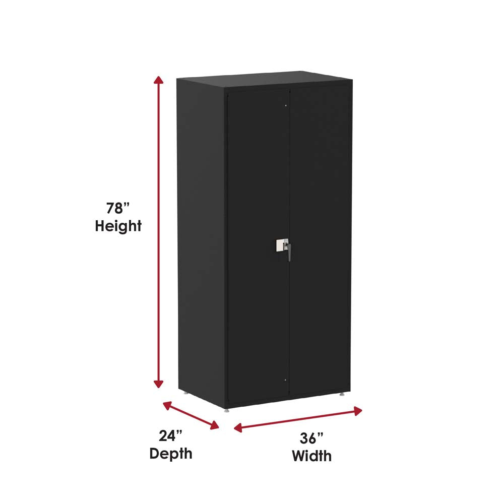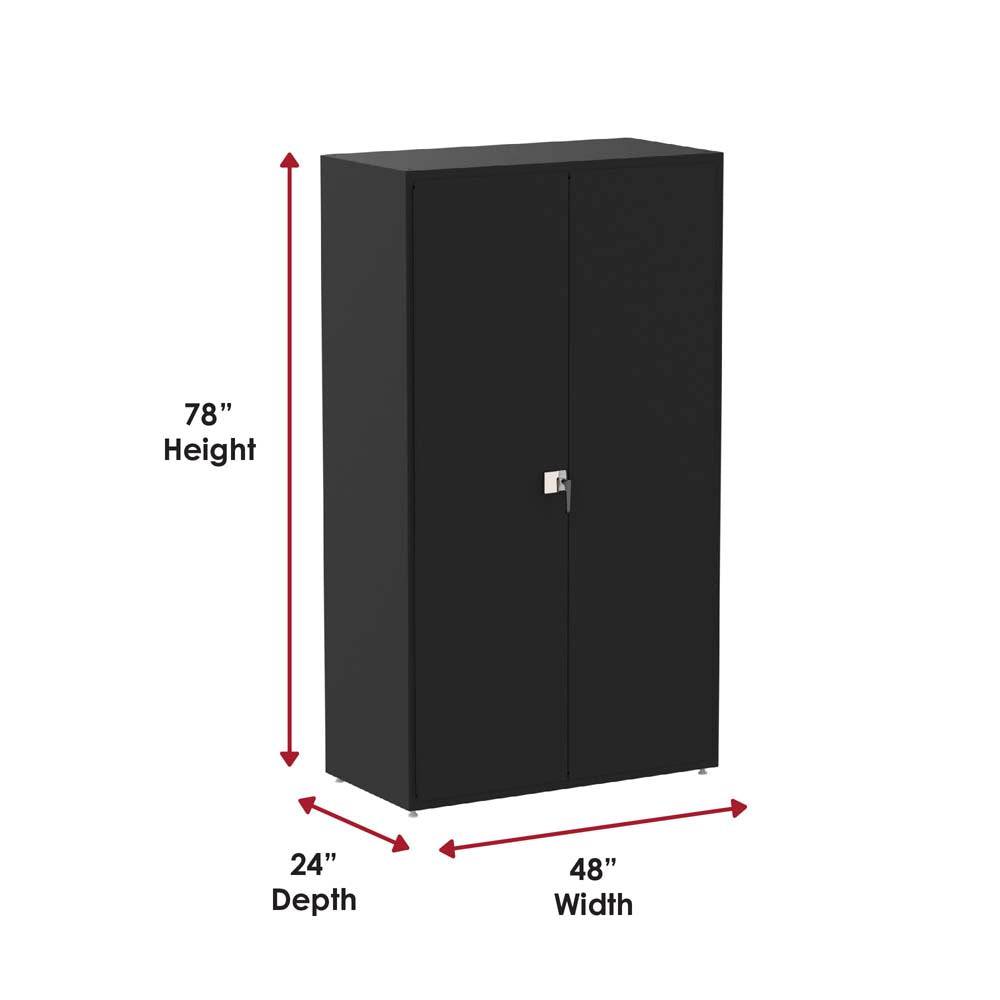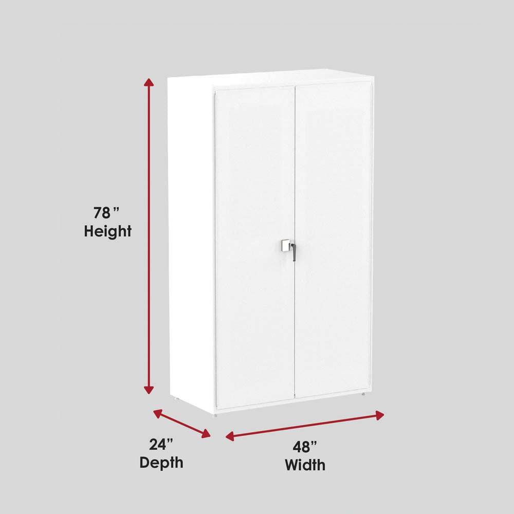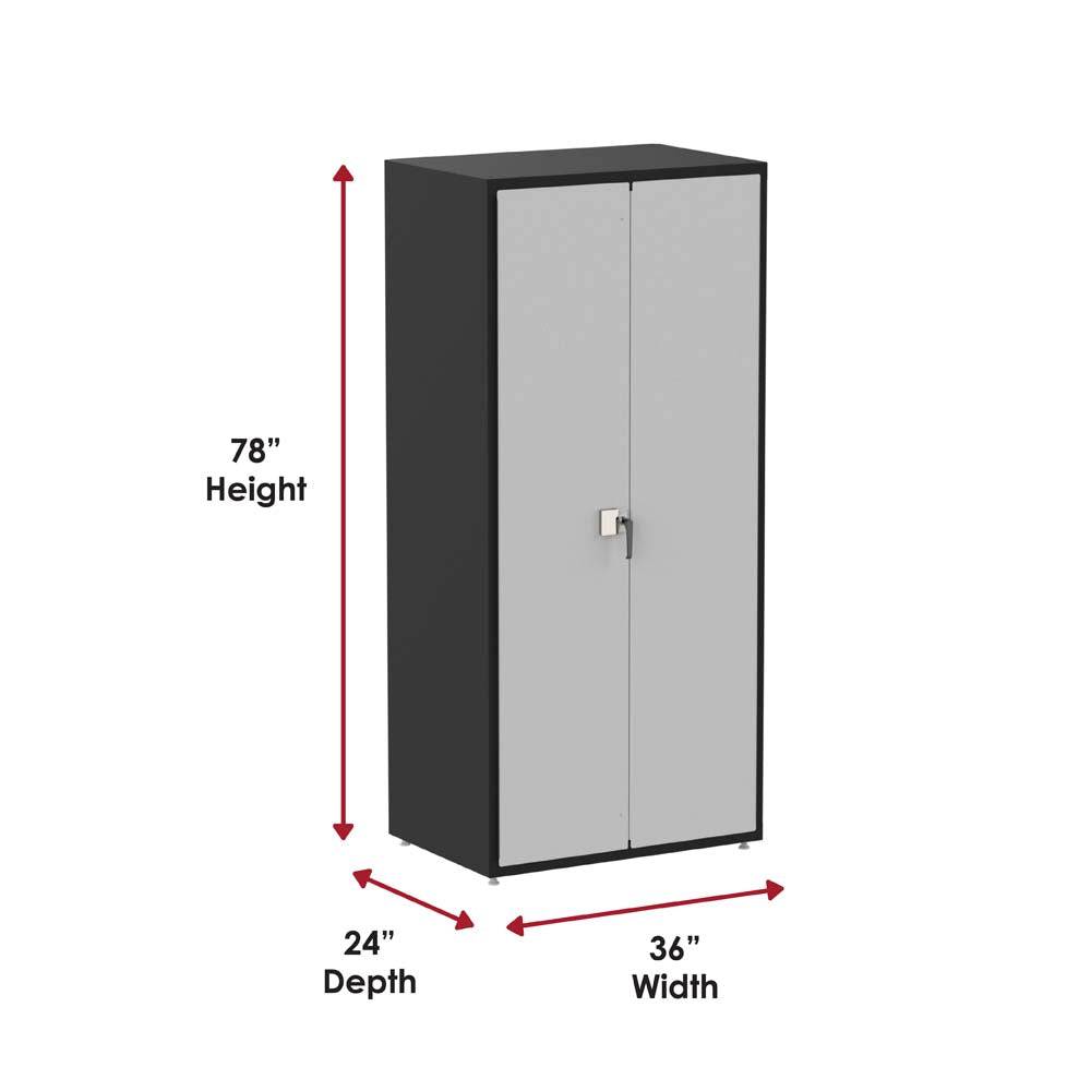 These cabinets come in sizes of 36" or 48" in width, 24" in depth, and a tall height of 78". They feature full-length louvered bin brackets on the doors to hang plastic storage bins for easy access to parts and supplies. The 18" deep shelves are positioned to ensure the bins on the doors are not hindered when closed. Each cabinet includes (3) adjustable shelves at 7 3/8" increments, each with an impressive 1,000 lb. capacity. (4) leveling feet to ensure stability on uneven surfaces. The full-length piano hinges on doors enhance the durability and lifespan of the cabinets. The cabinet's tactfully designed 3-point locking system aids in securing supplies and valuables. A programming bypass/master key is provided, and additional accessories are obtainable separately.
