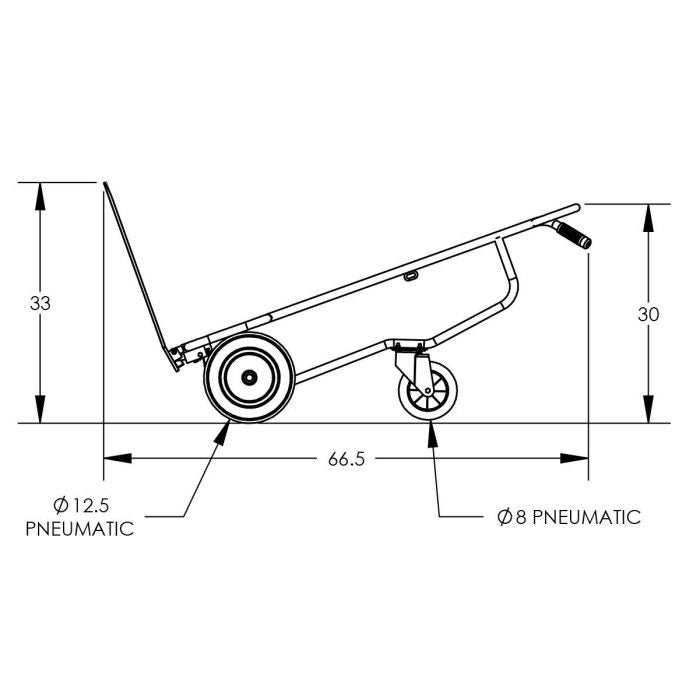 - Comes with (2) 12” front pneumatic and (2) 8” back swivel semi-pneumatic